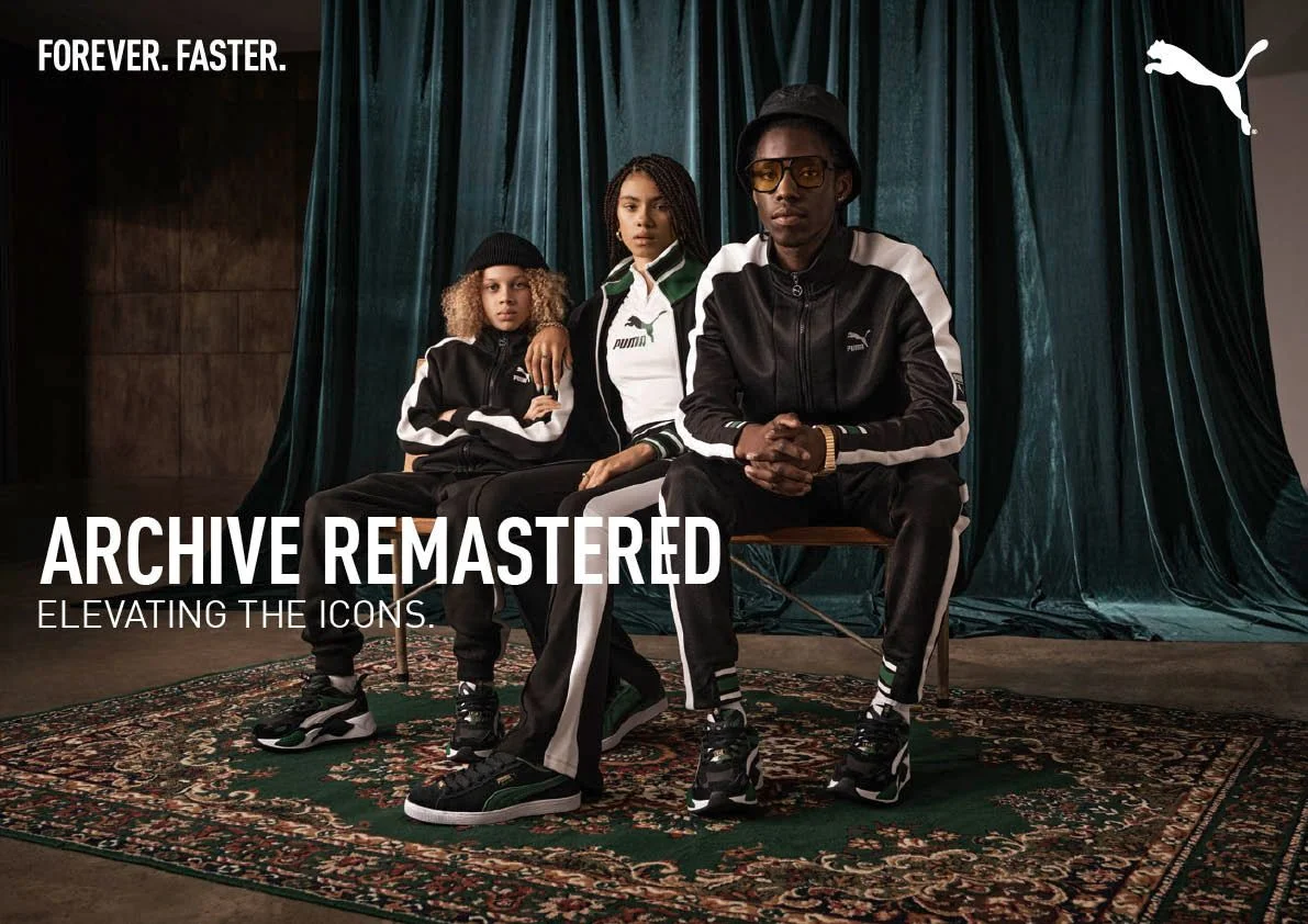Puma, quien ha estado en los pies y la ropa de los deportistas más ganadores al igual que artistas de talla mundial, da la entrada a esta nueva línea retrofuturista que conmemorará el acompañamiento de la marca con cada una de las áreas y categorías que ha representado como: el automovilismo, Run /Train, moda, Sportstyle y EL Fútbol. Sin duda, son 75 años de primicias, únicos momentos deportivos y logros humanos plasmados en “Archive Remastered”.