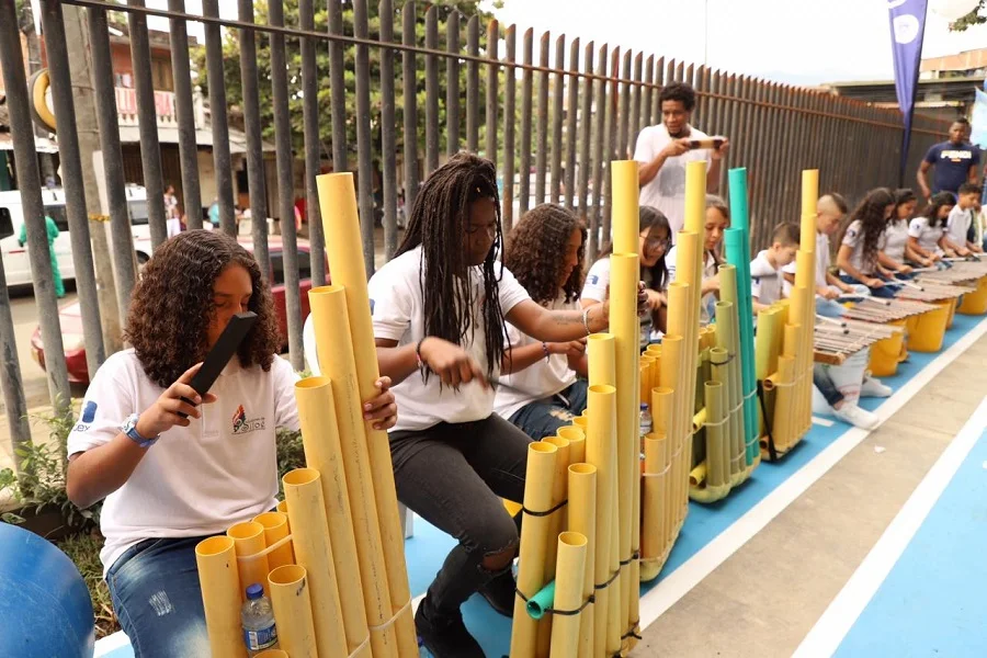 Taller musical con “Tambores de Siloé” la orquesta que hace música con materiales reciclados.