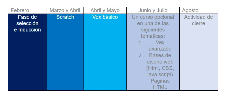 - Curso opcional en una de las siguientes temáticas: Vex avanzado (16H) o páginas HTML