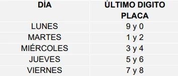Se establece una restricción a la circulación de vehículos en el perímetro urbano entre las 06:00 a 20:00 horas del día, tomando como referencia el último dígito de la placa.