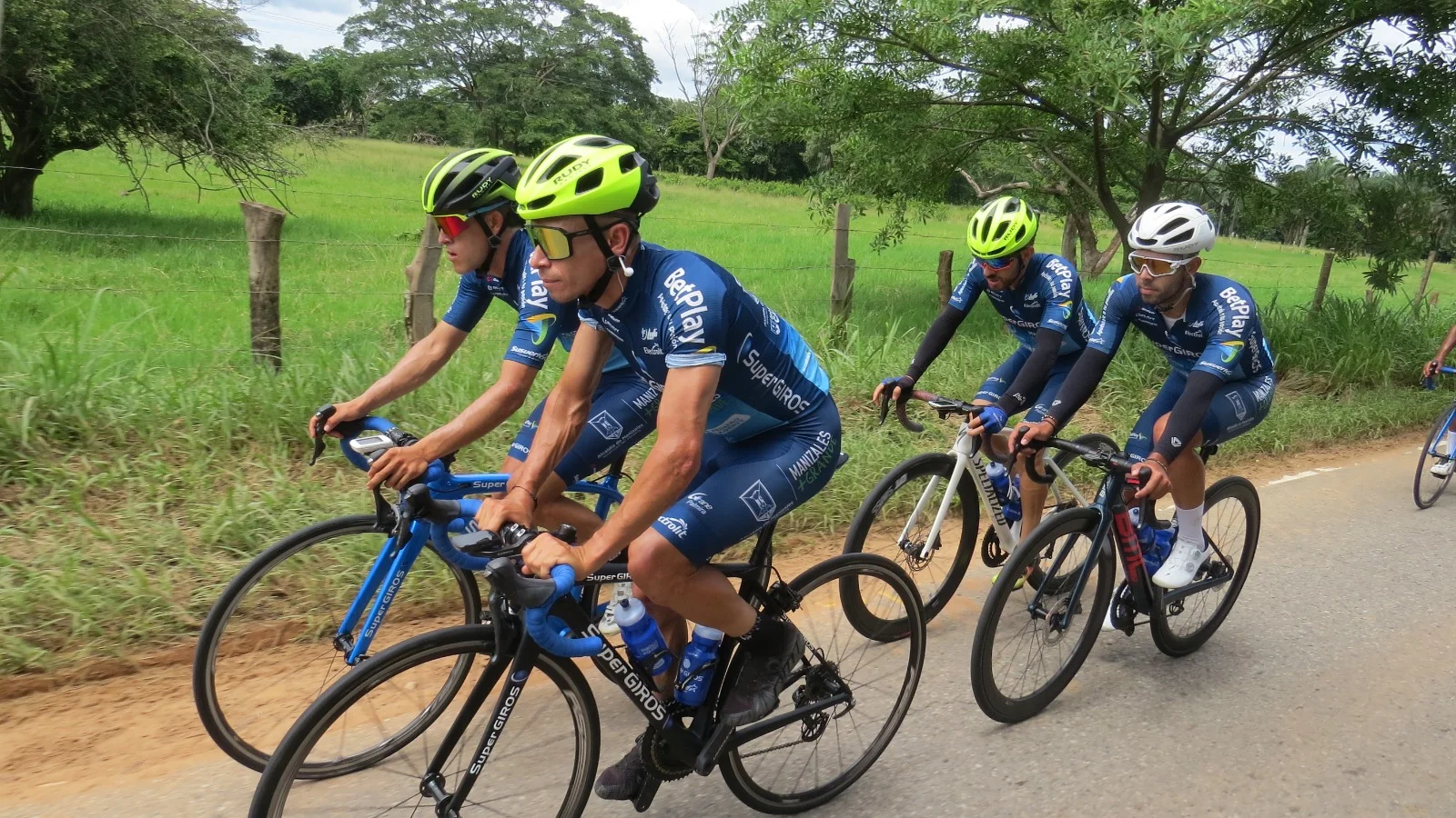El Team SuperGIROS, Alcaldía de Manizales, Gobernación de Caldas, SuSuerte, ya desembarcó ayer en Yopal (Casanare) donde el viernes 16 de junio se inicia la Vuelta a Colombia 2023 y hoy muy temprano hizo su primer entrenamiento en la Vía Marginal de la Selva, la misma que conduce de la capital casanareña a Paz de Ariporo, una vía en muy buenas condiciones para la práctica y competencia deportiva.
